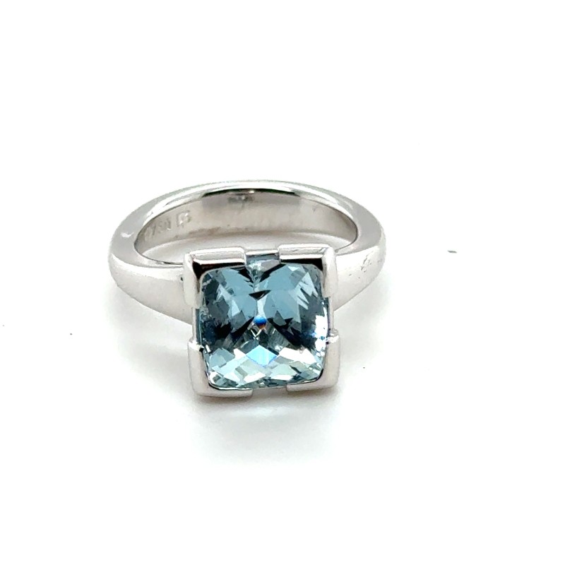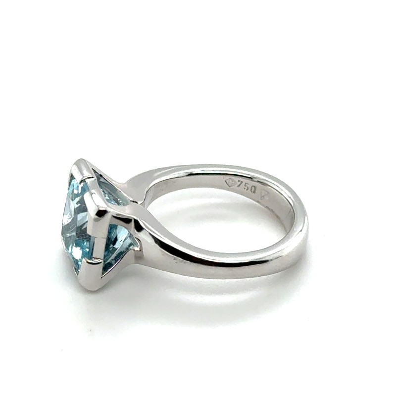 Make / Model: 18ct White Gold Square Cushion Cut Aquamarine In 4 Corner Claw Setting