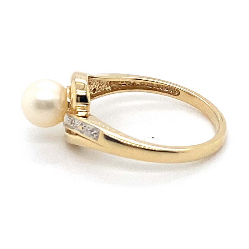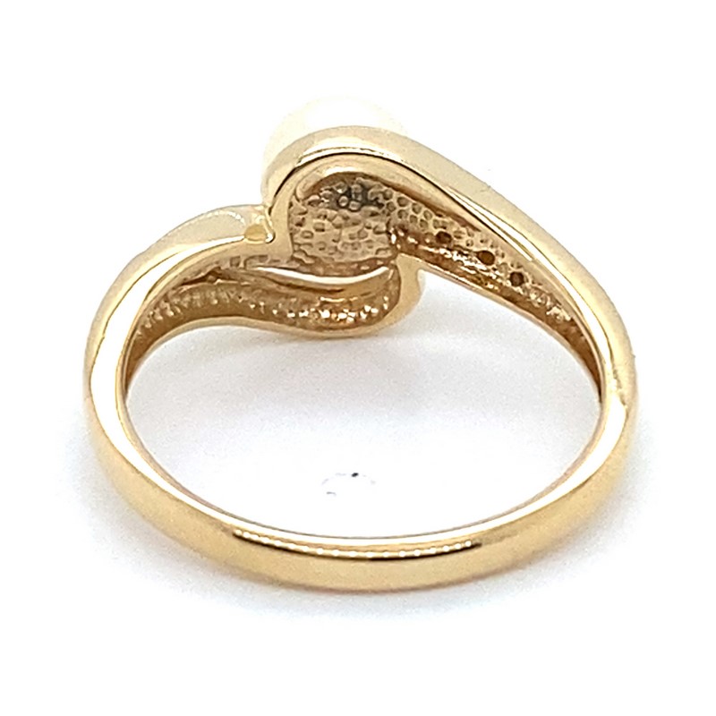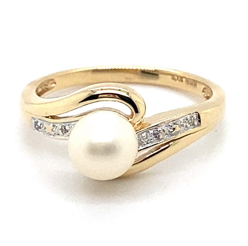 9CT YELLOW GOLD CULTURED PEARL AND DIAMOND DRESS RING