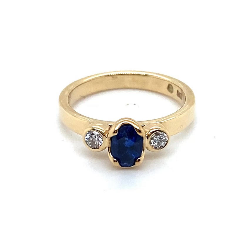 Make / Model: Sapphire 4 Claw Set With 2 Diamonds Bezel Set In The Trilogy Style Setting