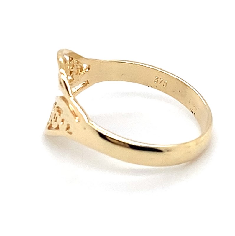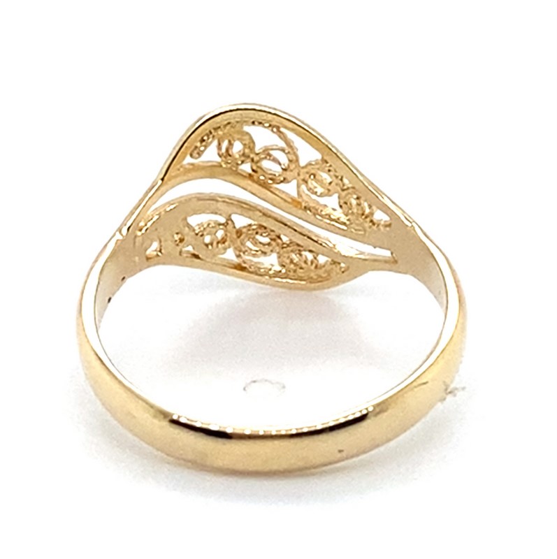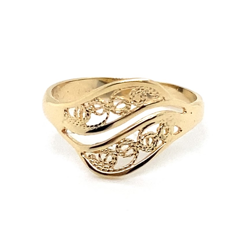 9CT YELLOW GOLD DOUBLE FILIGREE SCROLL TOP DRESS RING