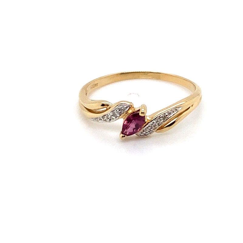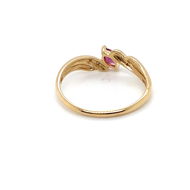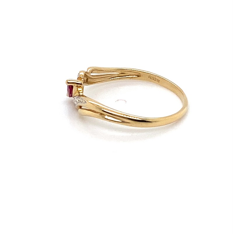 9CT YELLOW GOLD MARQUISE RUBY WITH DIAMONDS SET IN SHOULDERS DRESS RING
