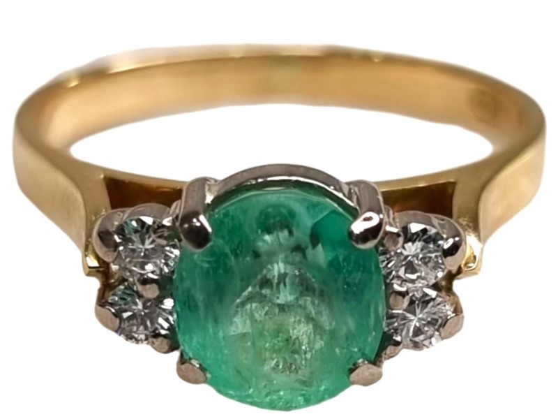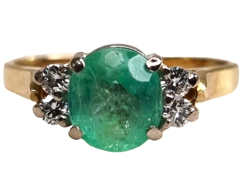 Oval Cut Mid Green Emerald And Diamond