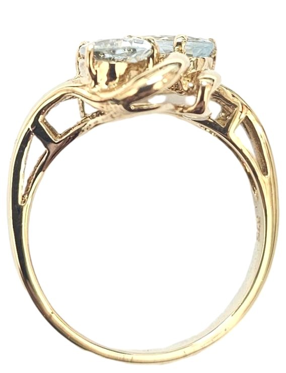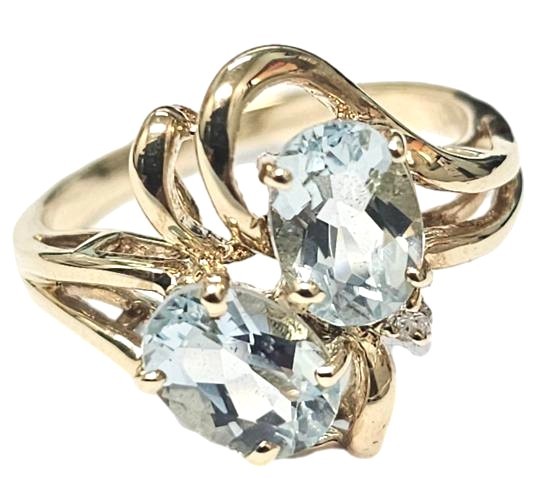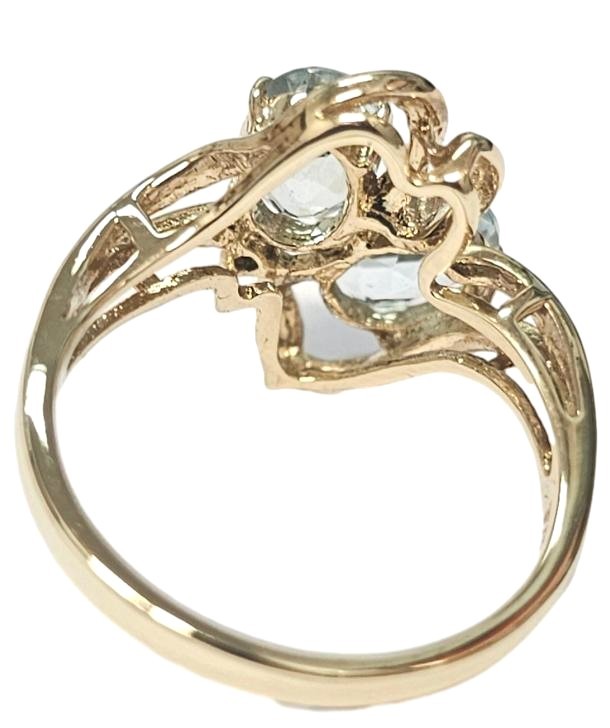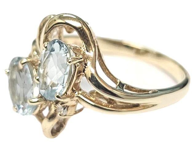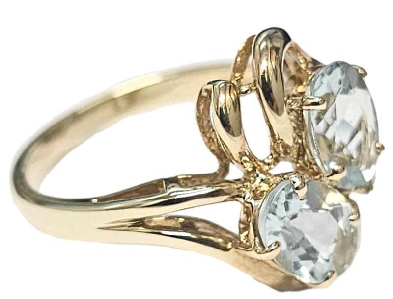 This stunning 9ct yellow gold ring features two oval shape topaz stones set in a classic claw setting. The smooth ring band has a size L fit. Weighing 2.81 grams, this elegant piece would make a wonderful addition to any jewellery collection.