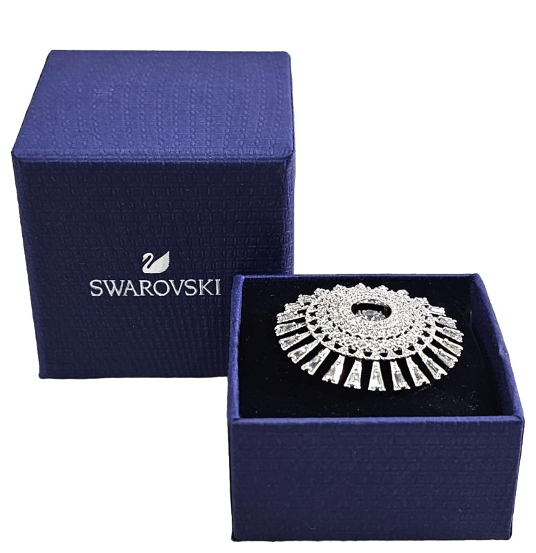 Elegant 9.35g Silver ring featuring a sparkling Swarovski stone. This beautiful ring showcases the signature Swarovski crystal cut, adding a touch of refined elegance to any outfit. Crafted from quality Silver, this stunning piece is a versatile accessory suitable for everyday wear or special occasions. All sizes and measurements are approximate.