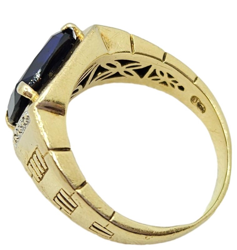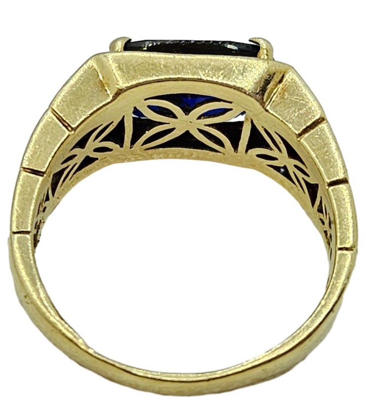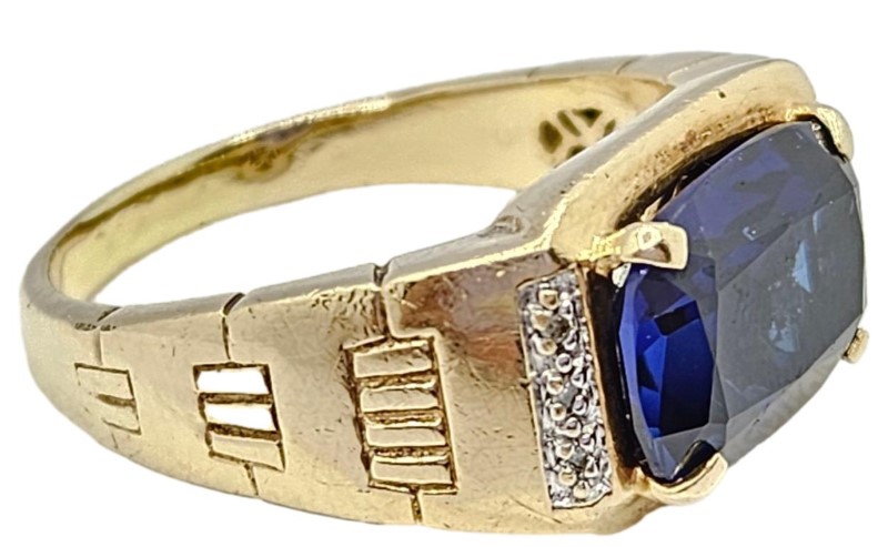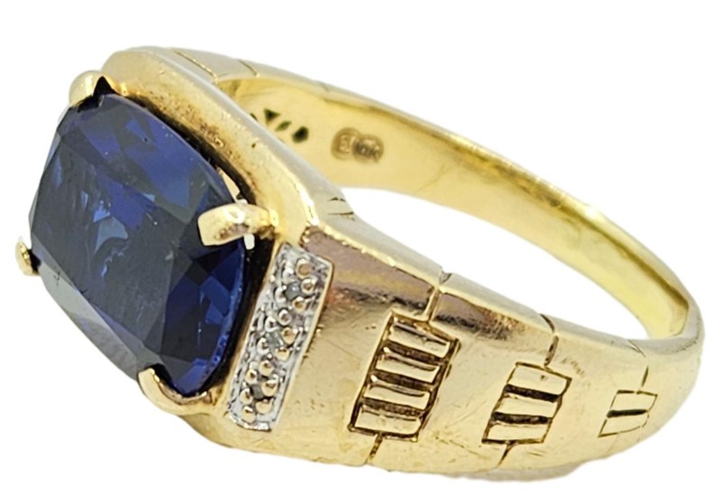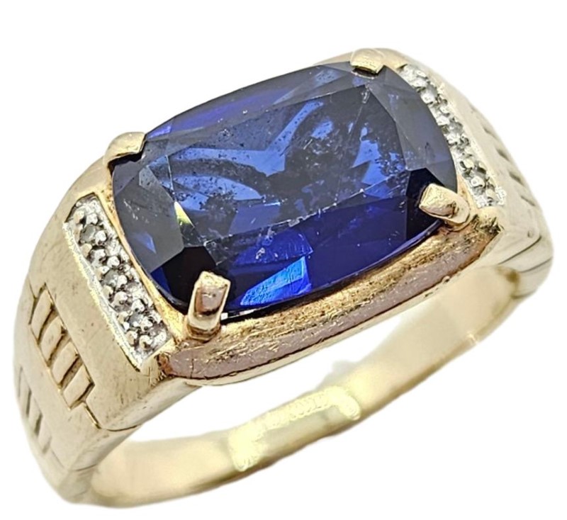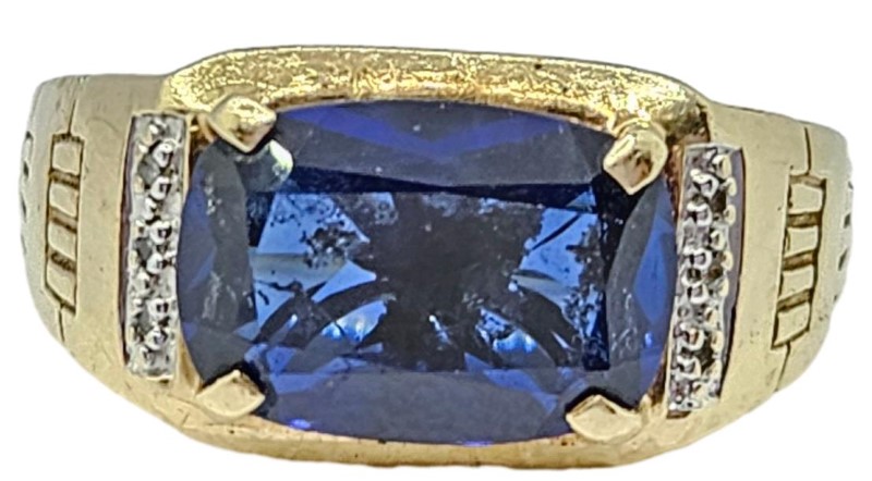 9kt Rectangular Cut Blue Stone Ring With Diamonds - Size Z