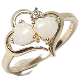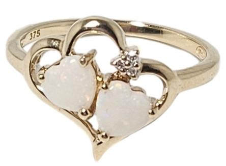 Y/G 9K Ring X2 Heart Opal's & Dia