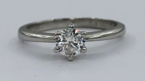 Main diamond est 0.5ct set in an 18ct white gold band.