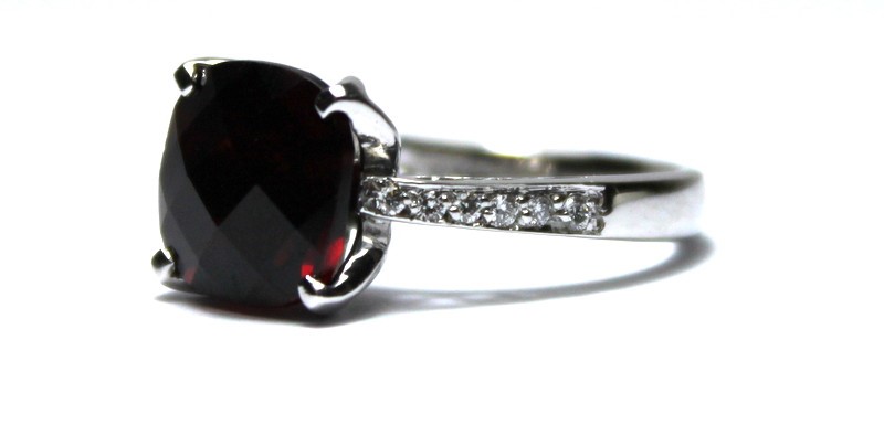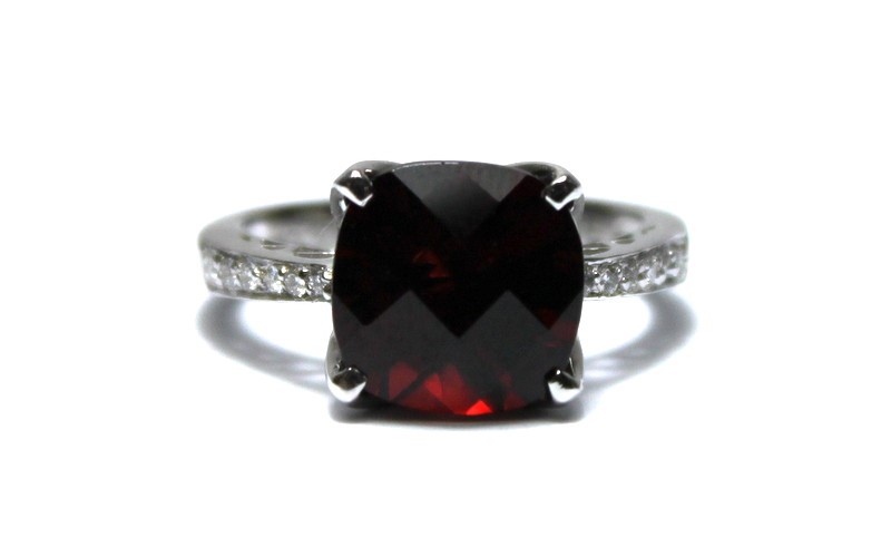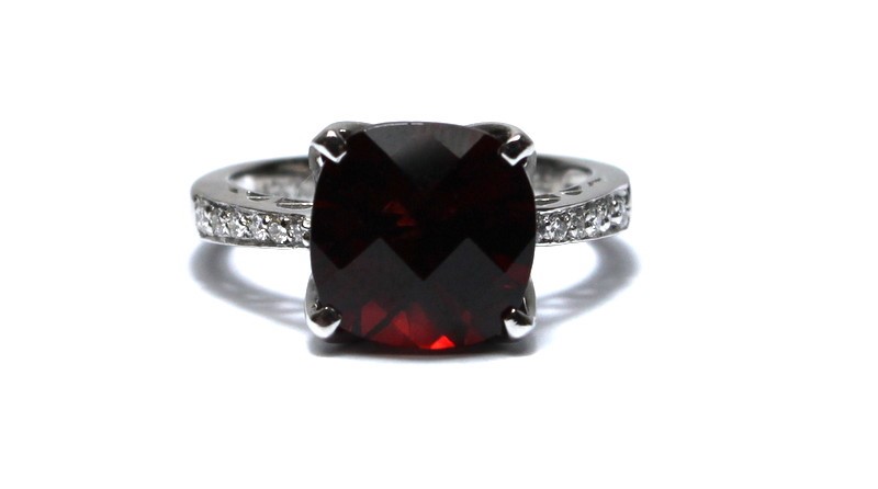 Featuring a claw set square cushion "red" natural garnet approximately 5.50ct.