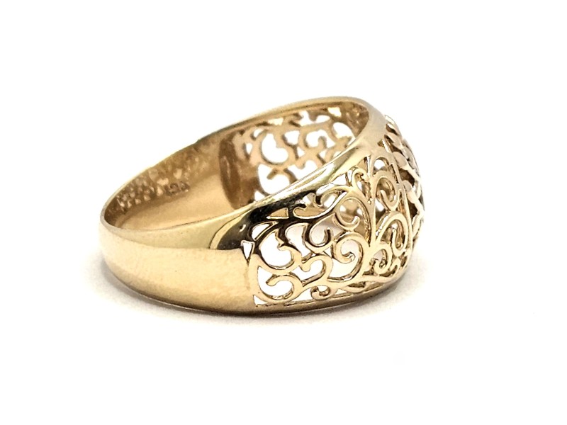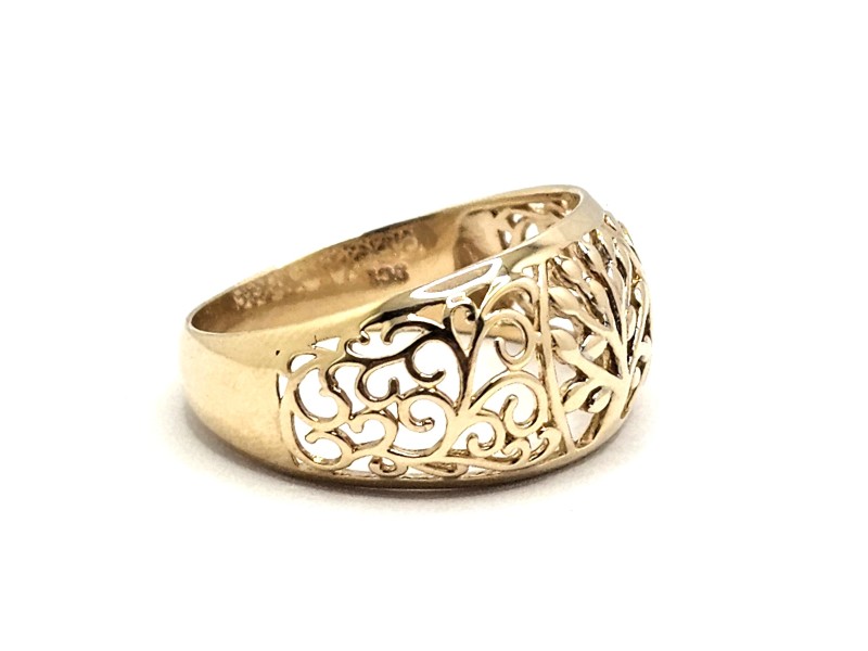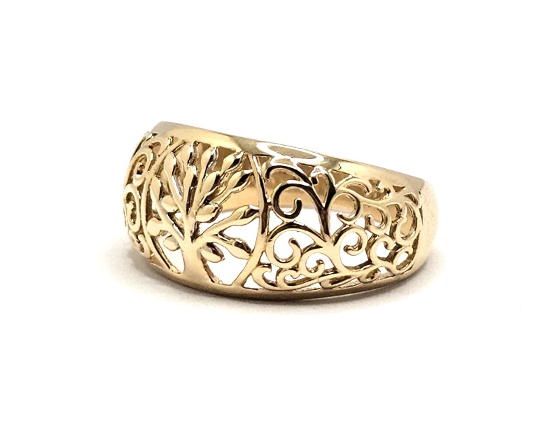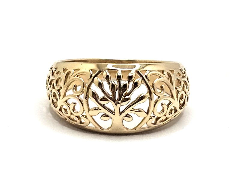 This elegant 9ct yellow gold ring showcases a beautiful tree of life design. Crafted with a smooth band, this ladies' ring has a hallmark of .375 and weighs a delicate 2.79g. A timeless and sophisticated accessory, this ring is a versatile addition to any jewellery collection. All sizes and measurements are approximate.