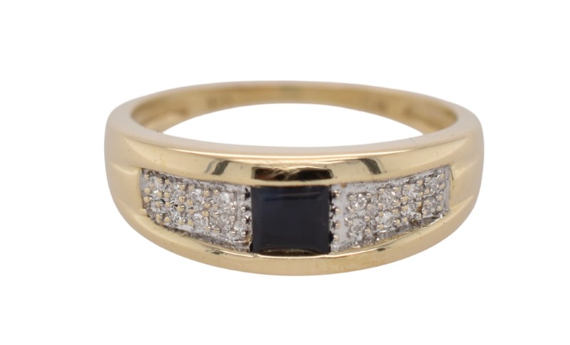 9ct Yellow Gold Diamond & Sapphire Ring