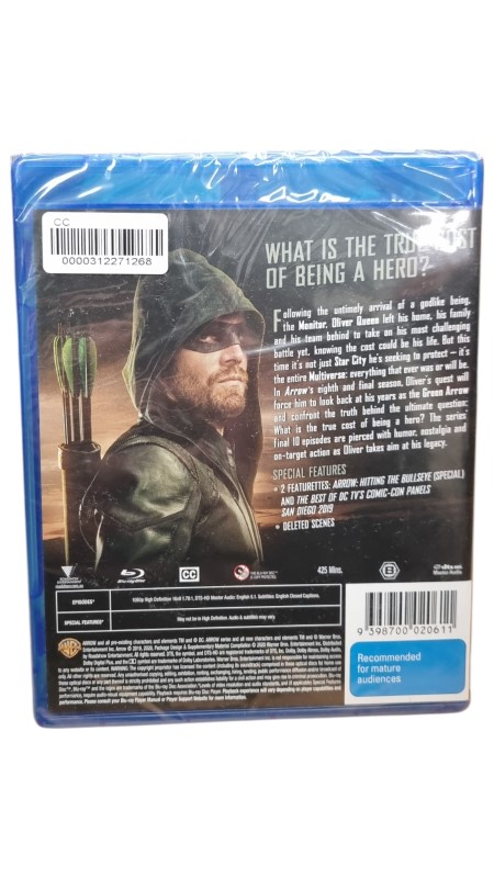 This Blu-ray disc features the eighth and final season of the popular TV series ARROW. The gripping storylines and dynamic performances from the talented cast make this a must-have for fans of the show. With a runtime of approximately 13 hours, this disc offers hours of entertainment.