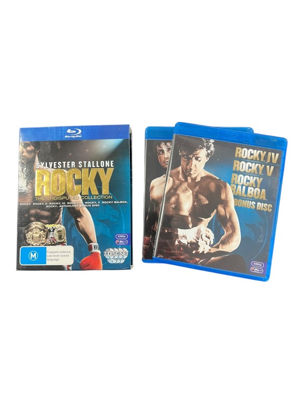 This classic collection of the Rocky films is a must-have for any movie enthusiast. Witness the inspiring journey of Rocky Balboa, an underdog boxer who rises to become a champion. Featuring the original Rocky film along with its acclaimed sequels, this set delivers a captivating narrative of determination, perseverance, and the power of the human spirit. With a few light scratches, this pre-owned set remains in good condition, ready to provide hours of cinematic entertainment.