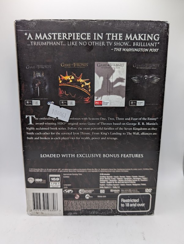 This impressive Game Of Thrones boxset features all eight seasons of the critically acclaimed fantasy drama series. Immerse yourself in the captivating world of Westeros, filled with complex characters, epic battles, and gripping storylines that will keep you on the edge of your seat. Whether you're a long-time fan or discovering the series for the first time, this collection is a must-have for any home media library.