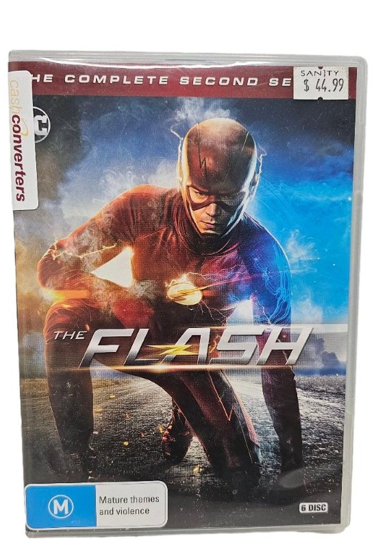 This secondhand DVD set contains the complete second season of the action-packed superhero television series, "The Flash". Featuring thrilling storylines and impressive visual effects, this collection follows the continued adventures of Barry Allen as he navigates his dual role as a forensic scientist and the lightning-fast hero known as The Flash. With a few light scratches on the discs, this pre-owned set is a great option for fans to add to their collection.