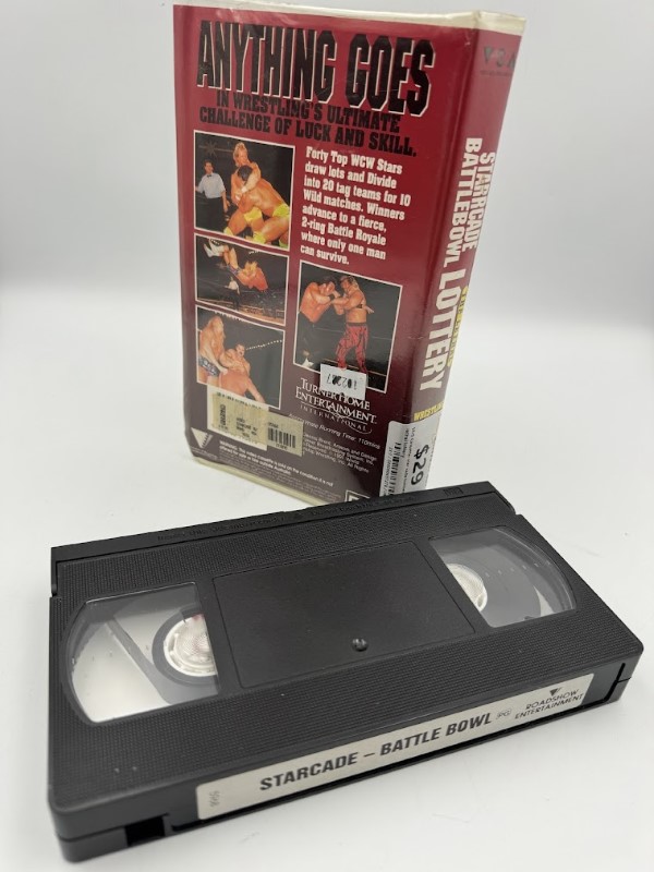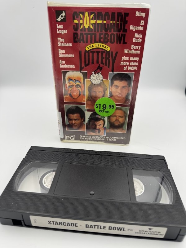 This classic WCW Starrcade Battlebowl: The Lethal Lottery VHS tape captures the excitement of one of the most thrilling pay-per-view events in professional wrestling history. Featuring intense matches and high-stakes action, this PG-rated release is a must-have for any fan of vintage wrestling entertainment. With only minor cosmetic wear, this secondhand tape is in great condition and ready to relive the drama and intensity of this legendary event.