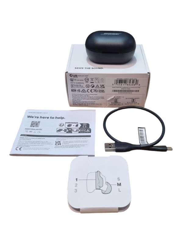 Comes with box,charging cord,manual and spare ear parts