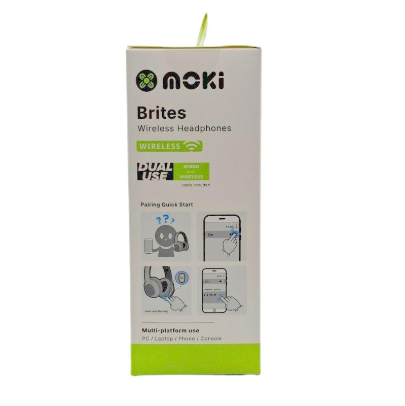 These MOKI BRITES wired headphones offer a comfortable and immersive listening experience. Featuring a sleek and stylish design, they deliver rich, detailed sound to elevate your audio enjoyment. With their adjustable padded headband and soft earcups, these headphones provide a secure and comfortable fit, ensuring hours of listening pleasure. Whether you're streaming music, watching movies, or gaming, these versatile headphones will bring your audio to life.