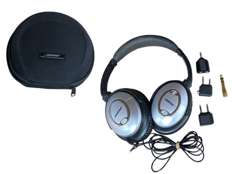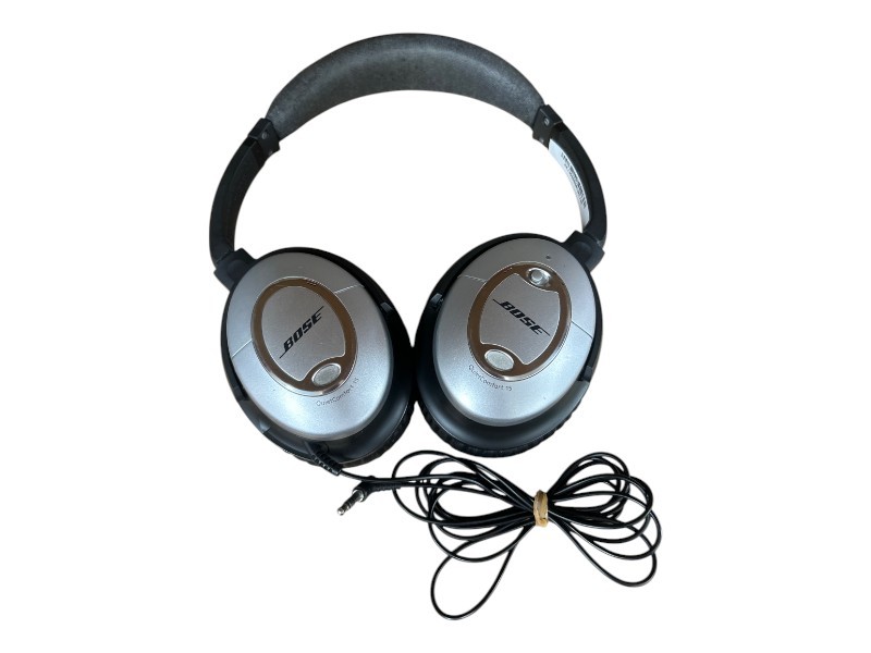 These Bose QuietComfort 15 headphones offer exceptional noise-cancelling technology and superior audio quality. Designed for immersive listening, they feature advanced acoustic engineering and a comfortable, ergonomic fit. With a sleek, minimalist aesthetic, these headphones seamlessly integrate into any environment. Despite some light cosmetic wear, they continue to deliver the exceptional performance Bose is renowned for.