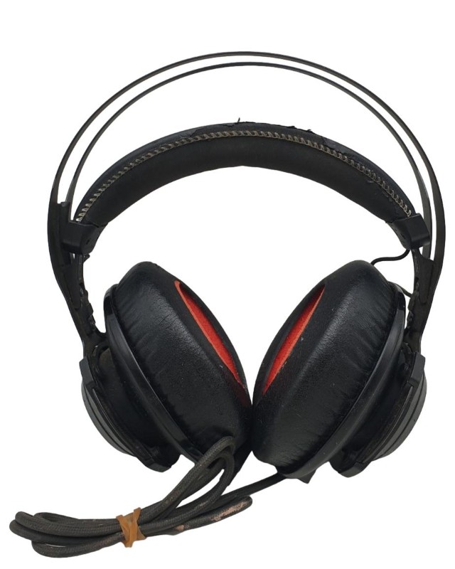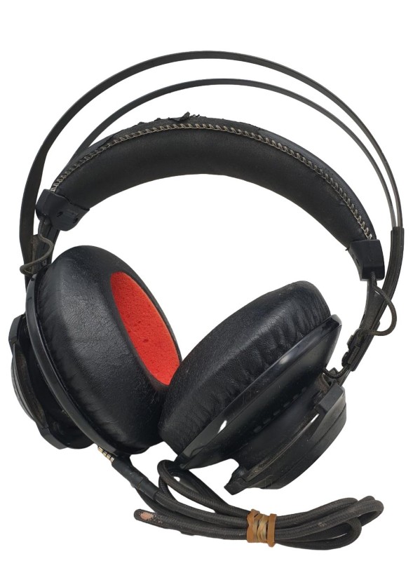 This reliable pair of wired headphones from the Hyper brand offers a functional listening experience, though they show signs of heavy wear from previous use. The durable construction and comfortable design make them a practical choice for everyday music enjoyment.