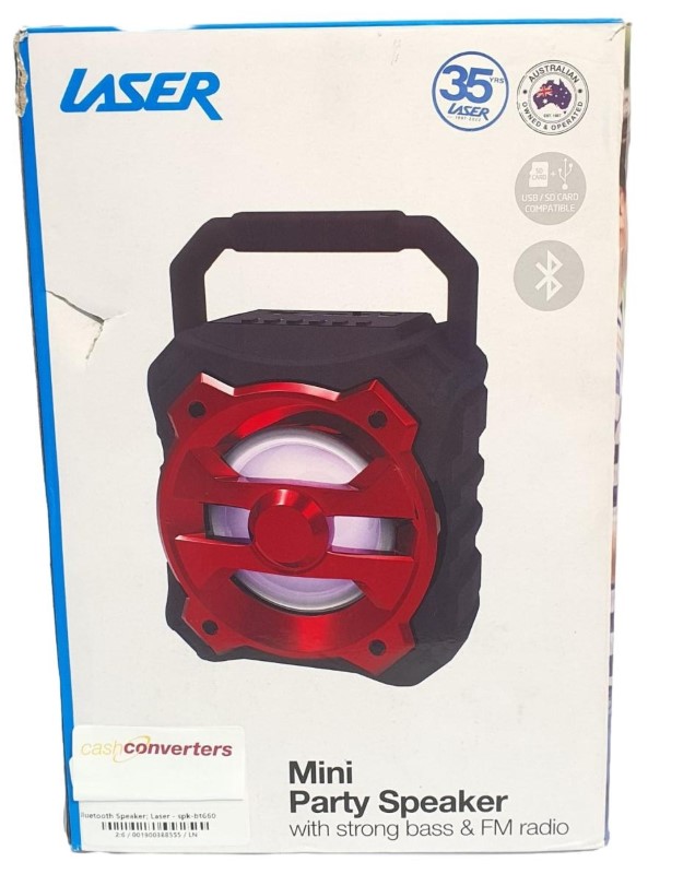 This Laser spk-bt660 Bluetooth speaker offers a versatile audio solution for your on-the-go needs. With its compact and portable design, you can enjoy high-quality sound wherever you go. The speaker features functions that allow you to seamlessly connect your devices and play your music with ease. While it may show light cosmetic wear from previous use, this speaker remains a reliable and convenient audio companion.