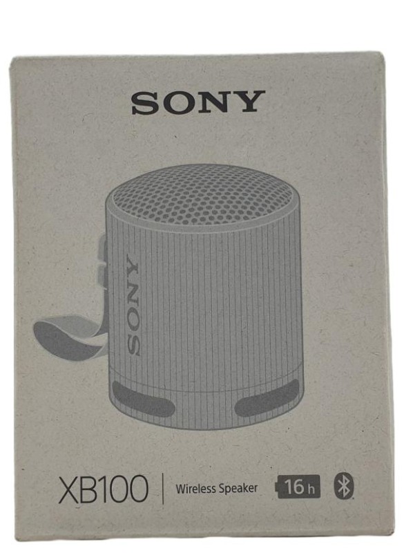 This compact and portable Bluetooth speaker from SONY, the XB100 model, delivers impressive sound quality in a sleek and durable design. With its wireless connectivity, you can easily stream your favourite tunes from your smart device. The included box, cable, and manual ensure you have everything you need to set up and use this speaker with ease. Despite some minor signs of wear, this speaker remains in good condition and is ready to provide an immersive audio experience.