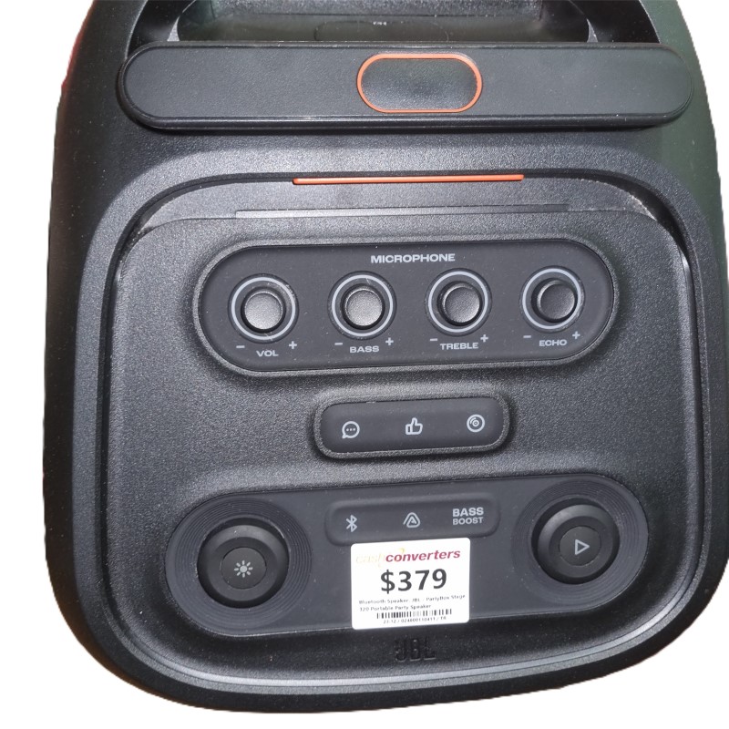 This JBL PartyBox Stage 320 Portable Party Speaker delivers powerful, high-quality sound for your next gathering. With its sleek design and impressive audio capabilities, it's the perfect companion for parties, outdoor events, or simply enjoying your favourite music. Its rechargeable battery provides up to 18 hours of playtime, ensuring the music keeps going all night long.