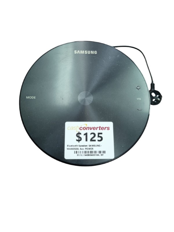 This SAMSUNG WAM3500 Bluetooth speaker delivers impressive audio quality in a compact and portable design. With its powerful sound capabilities, it's perfect for enjoying music, podcasts, or audiobooks on the go. The sleek and modern appearance complements any environment, making it a versatile addition to your audio setup.