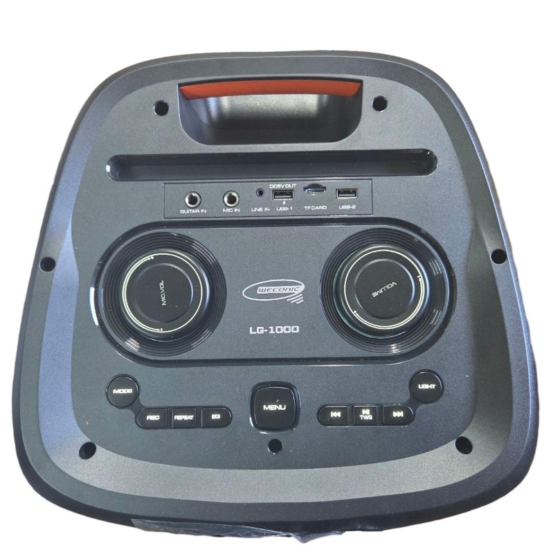 This Weconic LG-1000 Bluetooth Karaoke Speaker is a versatile and portable audio device that delivers impressive sound quality. With its built-in Bluetooth connectivity, you can easily stream music from your smartphone or tablet. The included accessories, such as the power cord, two microphones, remote control, manual, and AV cable, provide everything you need for a complete karaoke experience.