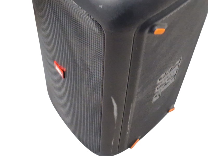 This powerful JBL PARTYBOX 300 Bluetooth speaker delivers exceptional sound quality and versatility. With its robust design and intuitive controls, it's perfect for lively gatherings and outdoor adventures. The speaker's built-in lighting effects create a vibrant atmosphere, adding to the overall entertainment experience. Despite some light cosmetic wear, this unit remains in good working condition, ready to provide hours of high-quality audio enjoyment.