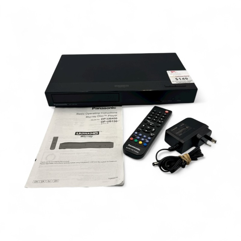 This Panasonic DP-UB150 Blu-ray disc player and recorder is a versatile home theatre component that delivers exceptional playback and recording capabilities. With support for the latest Blu-ray disc formats, it ensures you can enjoy your high-definition media with outstanding clarity and detail. The included remote control provides convenient command over the player's functions, while the included power cable and user manual make setup and operation a breeze.