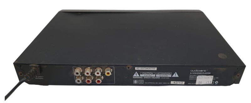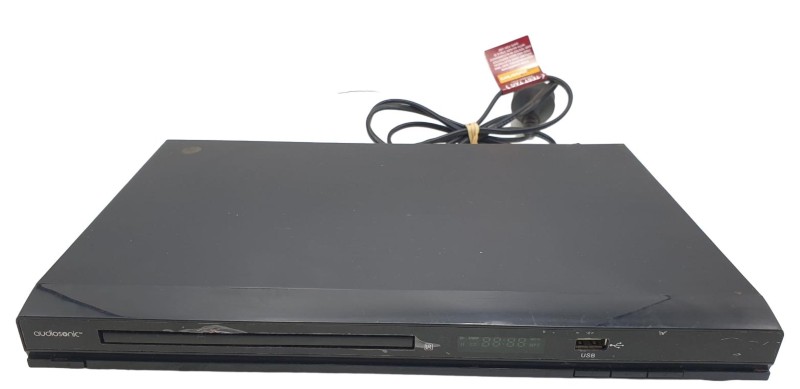 This Audiosonic CDV-99TAQ DVD player is a reliable home theatre component that delivers quality audio and video performance. With its user-friendly design, it seamlessly integrates into any entertainment setup. Although it may show light cosmetic wear from previous use, the player's core functions remain fully operational.