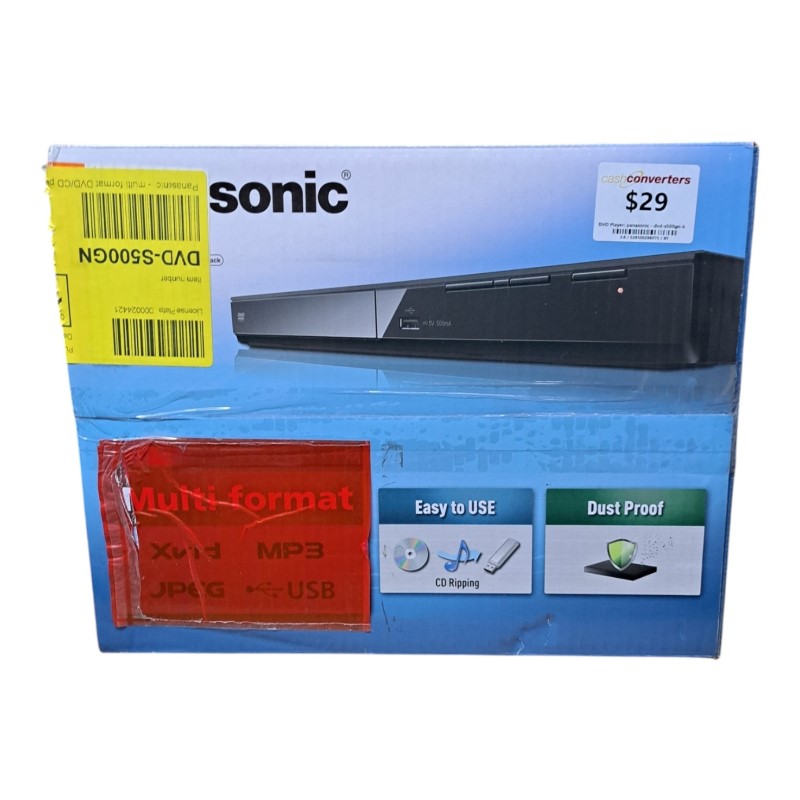 This Panasonic DVD-S500GN-K home theatre DVD player is in excellent condition and ready to provide a premium viewing experience. Featuring a sleek black design, it seamlessly integrates with your home entertainment setup. With the included remote control, you can easily navigate through your media library and adjust settings to your preference. Whether you're enjoying your favourite films or streaming content, this reliable player delivers impressive performance and quality.