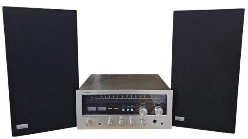 This vintage Pioneer SX-5000 stereo receiver with a pair of CS-200A speakers offers a classic home theatre experience. Featuring a powerful amplifier and high-quality components, this system delivers rich, immersive sound to elevate your entertainment. With its sleek, retro-inspired design, it will make a stylish addition to any living space.