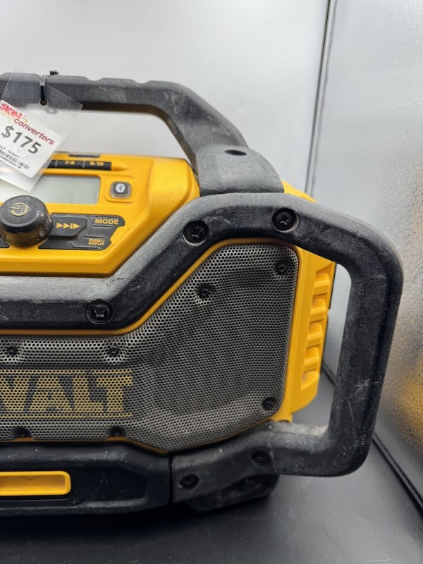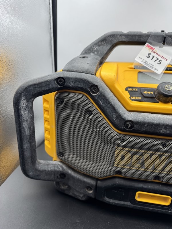 This DE-WALT DCR027 radio is a versatile media player that can enhance your home entertainment setup. With its compact design, it seamlessly integrates into any living space. Despite some light cosmetic wear, this unit remains fully functional and ready to deliver an immersive audio experience.