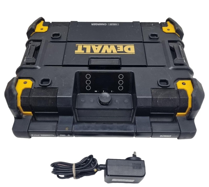 This powerful DeWALT 18V-54V XR TSTAK Li-ion Cordless Bluetooth Charger DAB Digital Jobsite Radio is a versatile audio companion for any workspace. With its cordless design and Bluetooth connectivity, you can enjoy high-quality digital radio or stream your favourite tunes wirelessly. The rugged TSTAK construction ensures durability, while the built-in charger keeps your power tools ready to go.