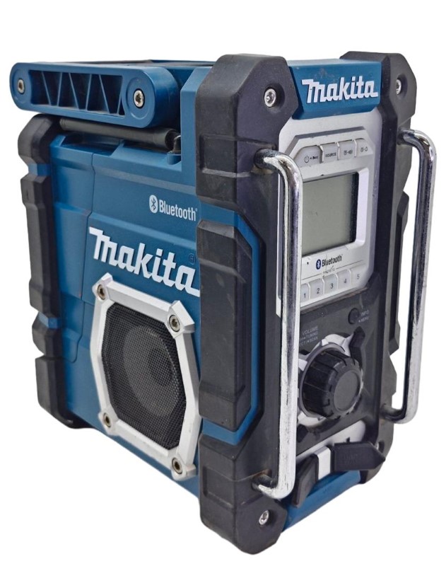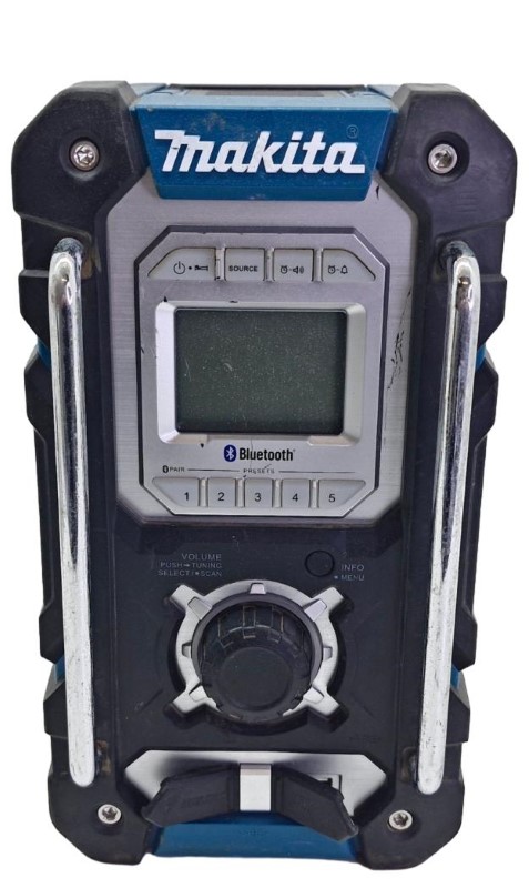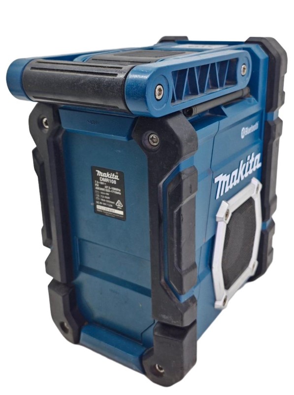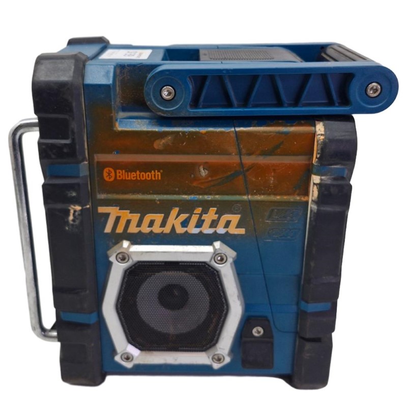 This Makita DMR108 battery housing clamp radio is a versatile media player that can be a great addition to your home entertainment setup. Despite the loose hinge on the battery backing, the unit remains functional and can provide reliable audio playback. With its compact design, it can be easily integrated into your living space. While the exterior shows signs of heavy use, the radio continues to perform as intended, making it a practical choice for those seeking an affordable audio solution.