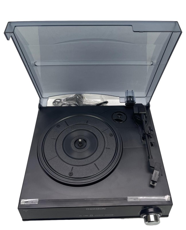 This Thomson MT-18PC 3 Speed Turntable with PC Link & Built-In Speaker is a versatile home entertainment solution. With its three-speed turntable, you can play your vinyl collection with ease. The built-in speaker provides rich, immersive sound, while the PC link feature allows you to connect to your computer for digital playback. Compact and stylish, this record player is a great addition to any home theatre or music setup.
