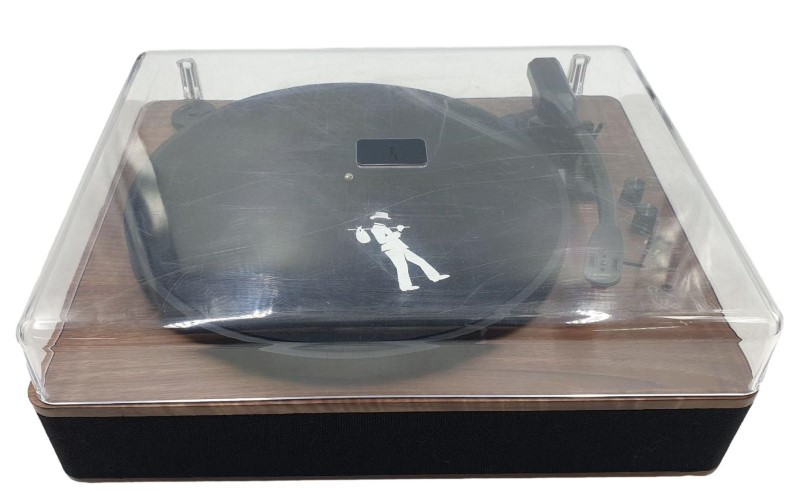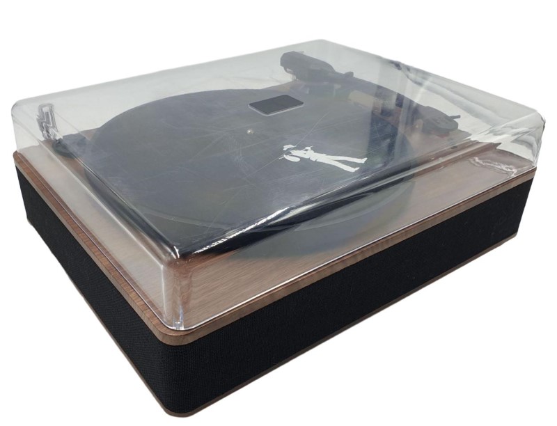 This FLEA MARKET 3 SPEED BLUETOOTH TURNTABLE WITH BUILT-IN-SPEAKERS (model FMTTBTWAL1) is a versatile record player that can bring the warmth of vinyl to your home. With its three-speed playback capabilities and Bluetooth connectivity, you can seamlessly integrate it into your home entertainment setup. Despite some light cosmetic wear, including a scratched lid, this turntable remains fully functional and ready to provide an exceptional listening experience.