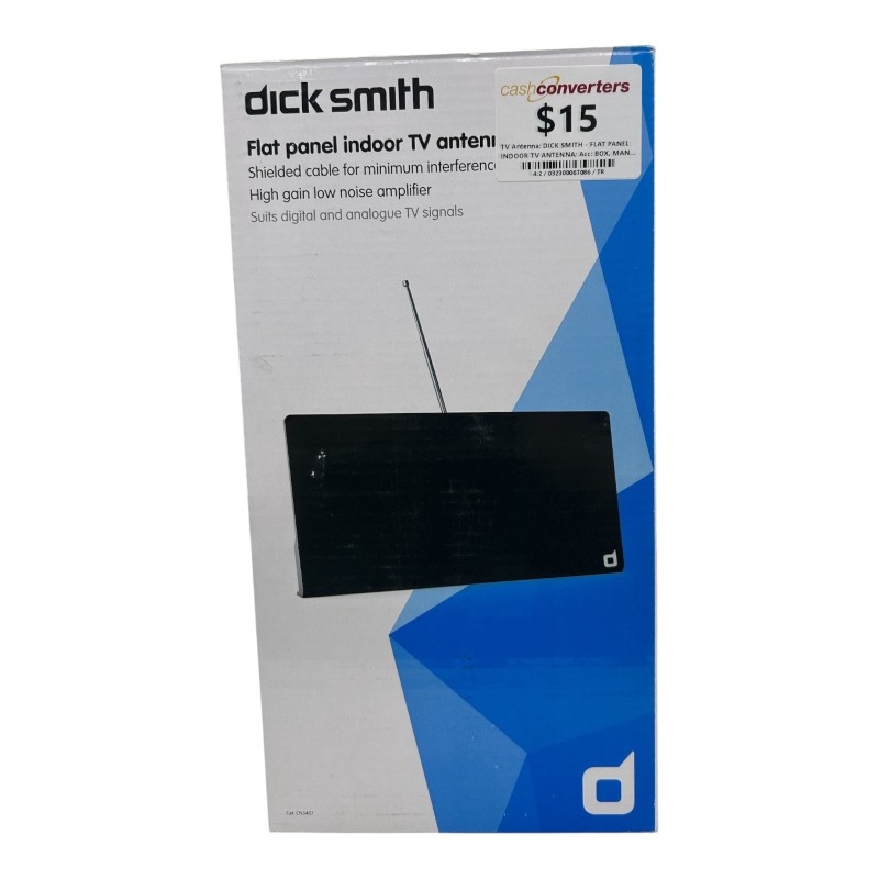 This compact DICK SMITH FLAT PANEL INDOOR TV ANTENNA is an excellent choice for enhancing your home entertainment setup. Featuring a sleek, low-profile design, it can seamlessly blend into your living space while providing reliable signal reception for your television. With the included box and manual, you'll have everything you need for a simple and straightforward installation.