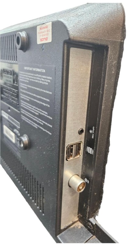 This Soniq 32-inch television offers a versatile home entertainment experience. With a sleek design and reliable performance, it delivers crisp visuals and immersive sound to elevate your viewing pleasure. The included remote control allows for convenient operation, though it is missing the battery cover.
