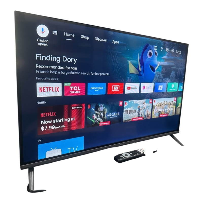 This FFALCON FF32S53 smart TV offers a great entertainment experience in your home. With its sleek design and smart capabilities, you can enjoy your favourite shows, movies, and streaming content with ease. The included remote control provides convenient control over the TV's functions. While the item shows light cosmetic wear, it remains in good working condition.