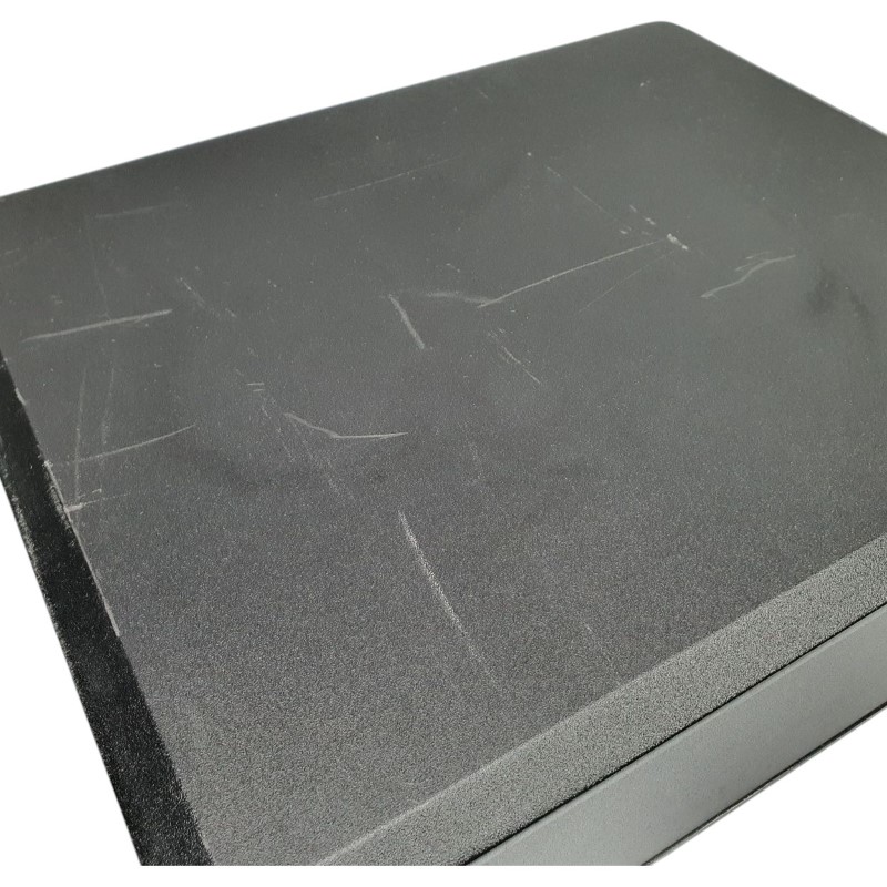 Remote battery cover missing and visible scratching on top of speaker as pictured.