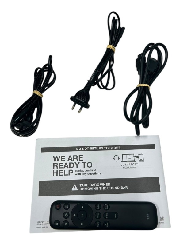 ACCESSORIES: SUBWOOFER S55H-SW S/N TTL2429031222S, MANUAL, 2 X POWER CABLE, HDMI CABLE, REMOTE