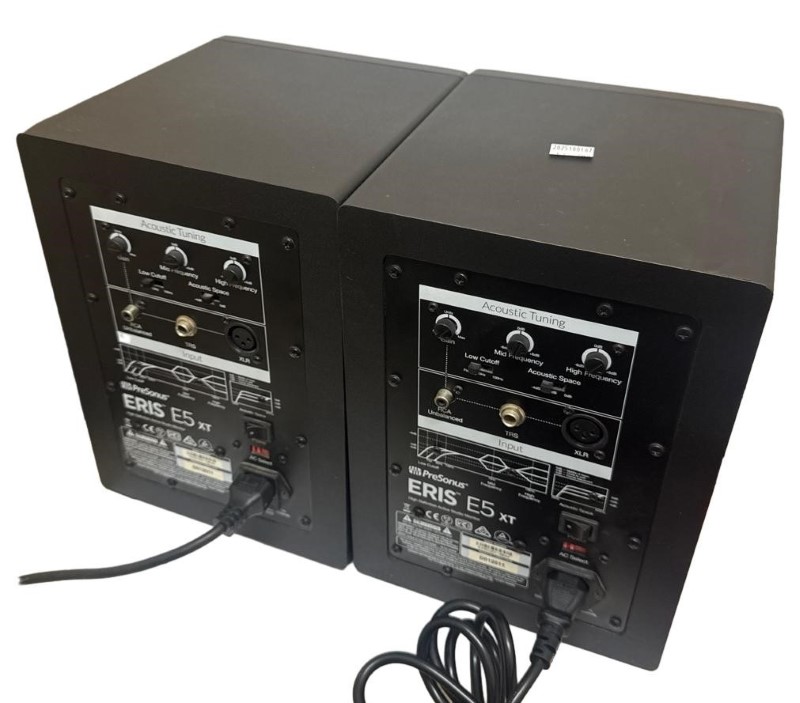 These PRESONUS ERIS E5 XT speakers are a versatile pair of wired stereo speakers ideal for home theatre, TV, or hi-fi setups. They are in good condition with little sign of wear. The set includes two speakers.