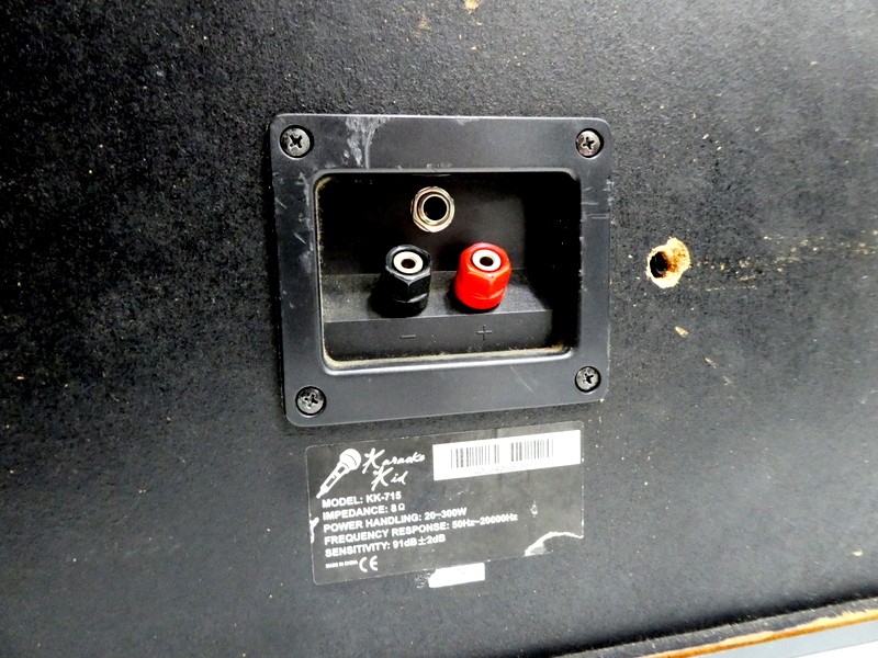 These Karaoke Kid 20-300W stereo speakers offer powerful, immersive sound for your home entertainment setup. With a robust 20-300W output, they deliver dynamic audio performance for movies, music, and more. Though they show signs of heavy use, these speakers remain fully functional and ready to enhance your home theatre or music listening experience.