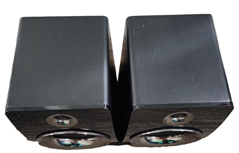- Bookshelf-style speakers with a sleek, modern aesthetic