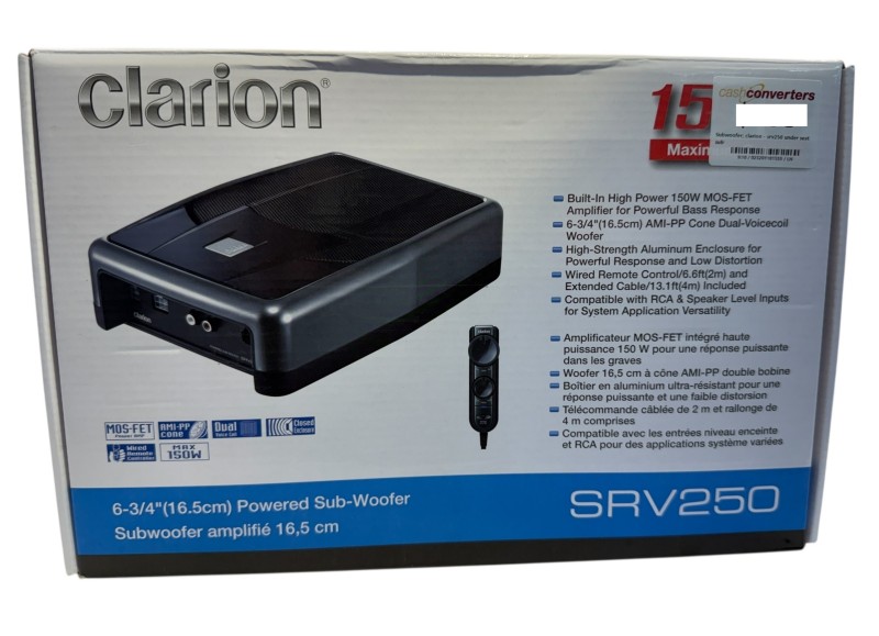 This compact Clarion SRV250 under-seat subwoofer delivers powerful bass performance to enhance your home theatre or music listening experience. With its sleek design, this subwoofer can be easily integrated into your setup without taking up too much space. Its built-in amplifier ensures deep, rich low-end tones that will elevate your audio enjoyment.