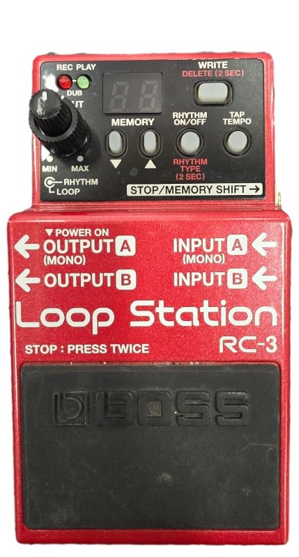 This BOSS RC-3 LOOP STATION guitar pedal is a versatile accessory for musicians. It offers a range of functions that allow you to create layered loops and recordings. While it may show light cosmetic wear from previous use, the pedal remains in good working condition.