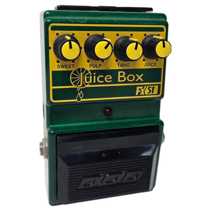 This DOD JUICE BOX guitar pedal is a versatile and reliable accessory for musicians. With its intuitive controls and compact design, it delivers a range of tones to enhance your guitar's sound. Its robust construction ensures long-lasting performance, while its sleek aesthetic complements any pedalboard setup.