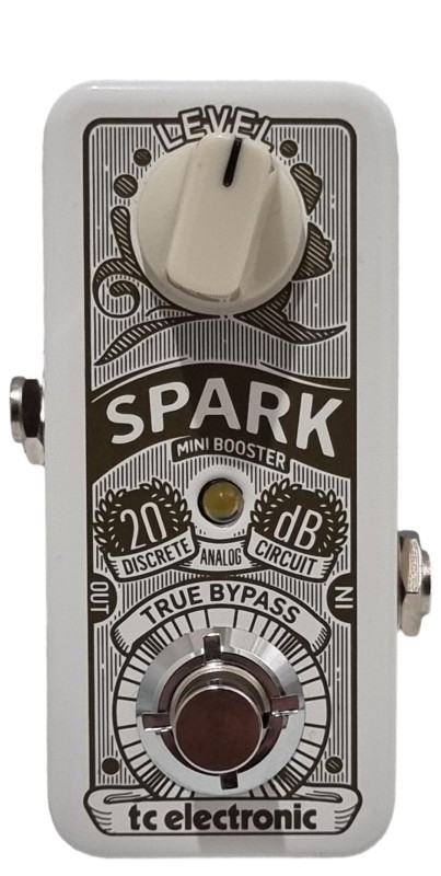This TC ELECTRONIC SPARK guitar pedal is a versatile accessory for musicians. It delivers a range of tones to enhance your guitar's sound, providing a spark of creativity to your performances. The compact design makes it easy to integrate into your setup. With its solid construction and minimal signs of wear, this pedal is ready to elevate your musical expression.